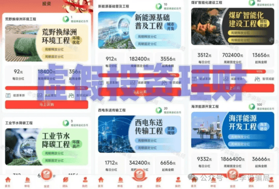 话术:冒充“碳达峰工作组”,伪造,以“国家项目”为名推销高收益理财;近期以“白名单”、“绿途币”为诱饵催促用户追加投资。