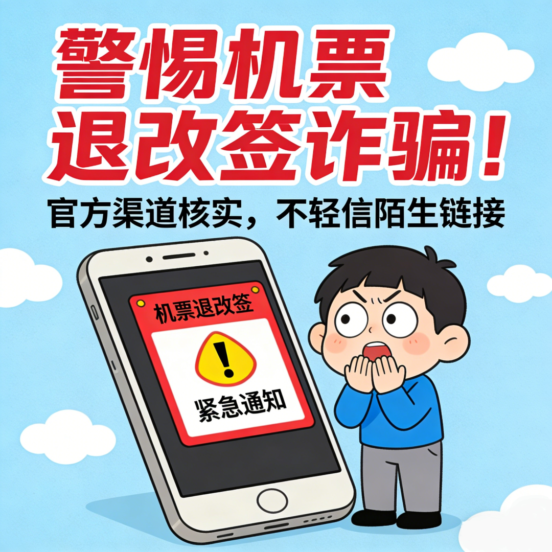 2.通过官方渠道(航司官网、购票平台)核实票务信息,勿信陌生短信和电线.警惕“屏幕共享”请求,绝不透露验证码。