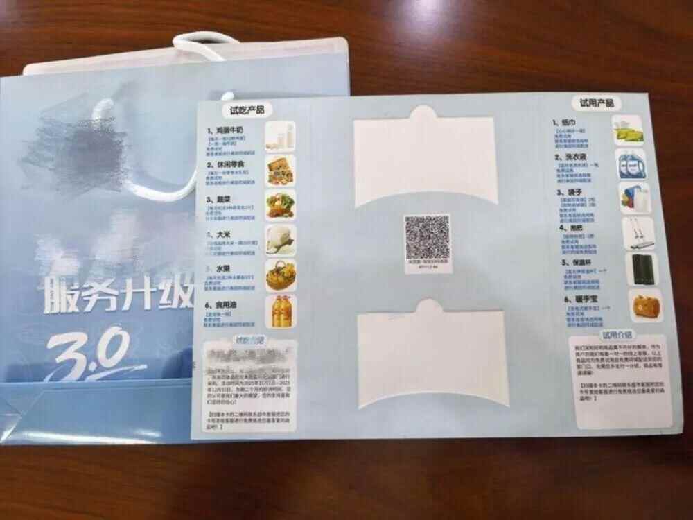2025年11月的一天,家住山东淄博的邢女士偶然发现,自家门把手上挂着一个制作精美的手提袋,其中装有一张某知名超市的“试吃卡”。她以为是超市的宣传推广活动,便扫描了卡面二维码进入“官方客服”对话页面,按照客服引导进入聊天群,选择了一袋大米作为试吃产品。