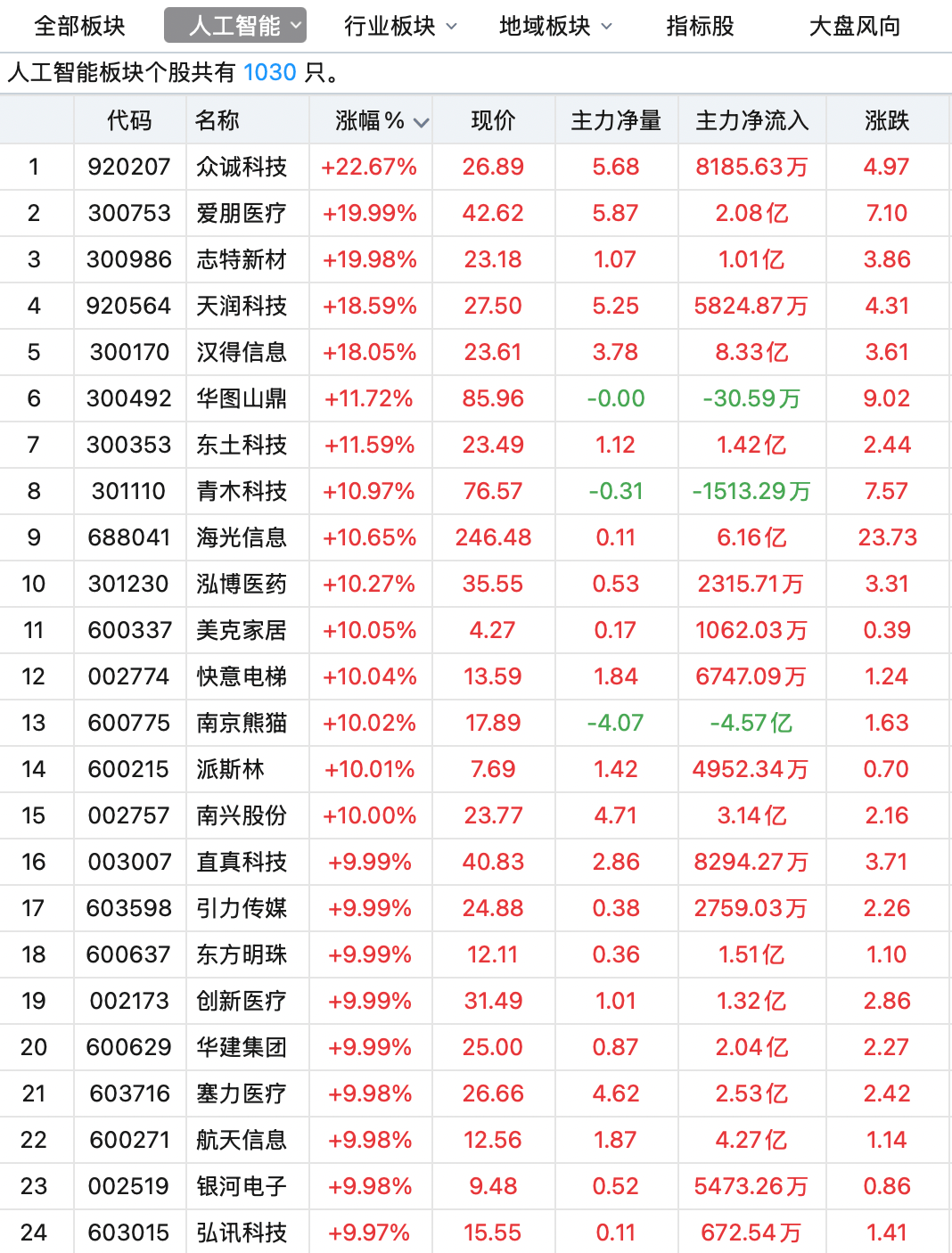 中国电子商务专家服务中心副主任郭涛在接受《证券日报》记者采访时表示,AI板块1月8日整体呈现高开高走态势,多只个股开盘即告涨停,资金加速流向工业母机等政策聚焦的应用端领域,显示出市场对产业政策导向的积极回应。不过板块内部呈现结构性分化:前期涨幅较大的芯片等硬件赛道出现获利回吐,智谱AI等大模型企业上市虽进一步激发市场热度,但部分个股已显露“利好兑现”特征,需关注短期波动风险。