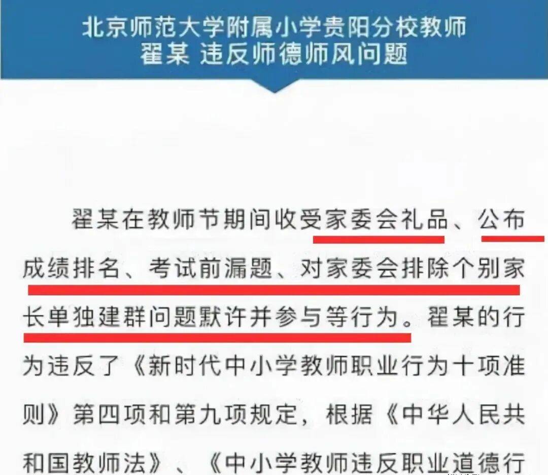 2021年10月,一则新闻上了热搜,一位妈妈举报了自己女儿的班主任。在校方公布的通报稿上,该教师存在的“公布成绩排名、考试前漏题”等问题引人关注